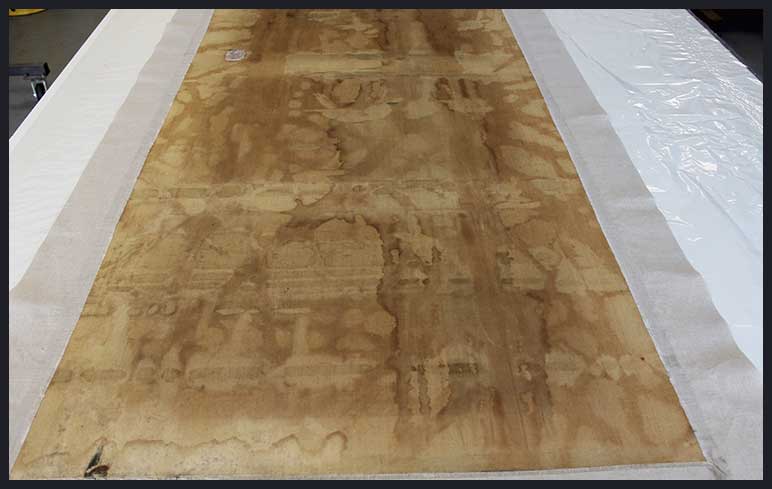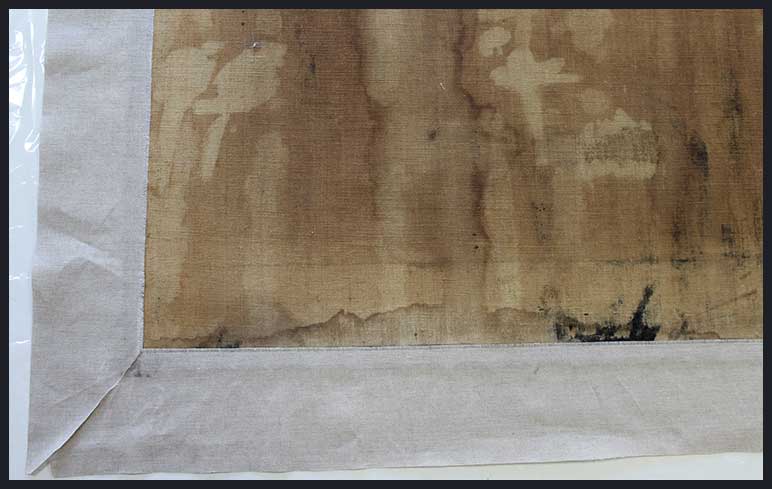 Lorsque l’on veut retendre sur son châssis une toile qui ne nécessite pas de rentoilage, il est indispensable de coller en périphérie des bandes de toiles (lin ou polyester) avec un adhésif synthétique (Beva ou Plextol). Il est souvent nécessaire d’ajouter un intissé polyester intermédiaire pour renforcer la zone de pliage de la toile originale, fragile et cassante à cet endroit.