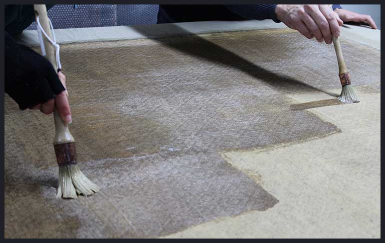 Pratiquée depuis plusieurs dizaines d’années en France et à l’étranger, cette technique a fait ses preuves mais ne doit pas être pratiquée sans tenir compte de l’époque de l’œuvre, de ses matériaux constitutifs et de son lieu de conservation. Nous réservons ce traitement aux toiles modernes des XIXème et XXème siècles, déchirées ou très fragiles.